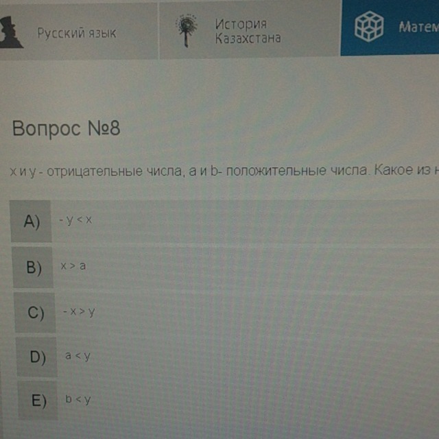 Y и y - отрицательные числа, a и b - положительные числа. Какое из неравенств верное