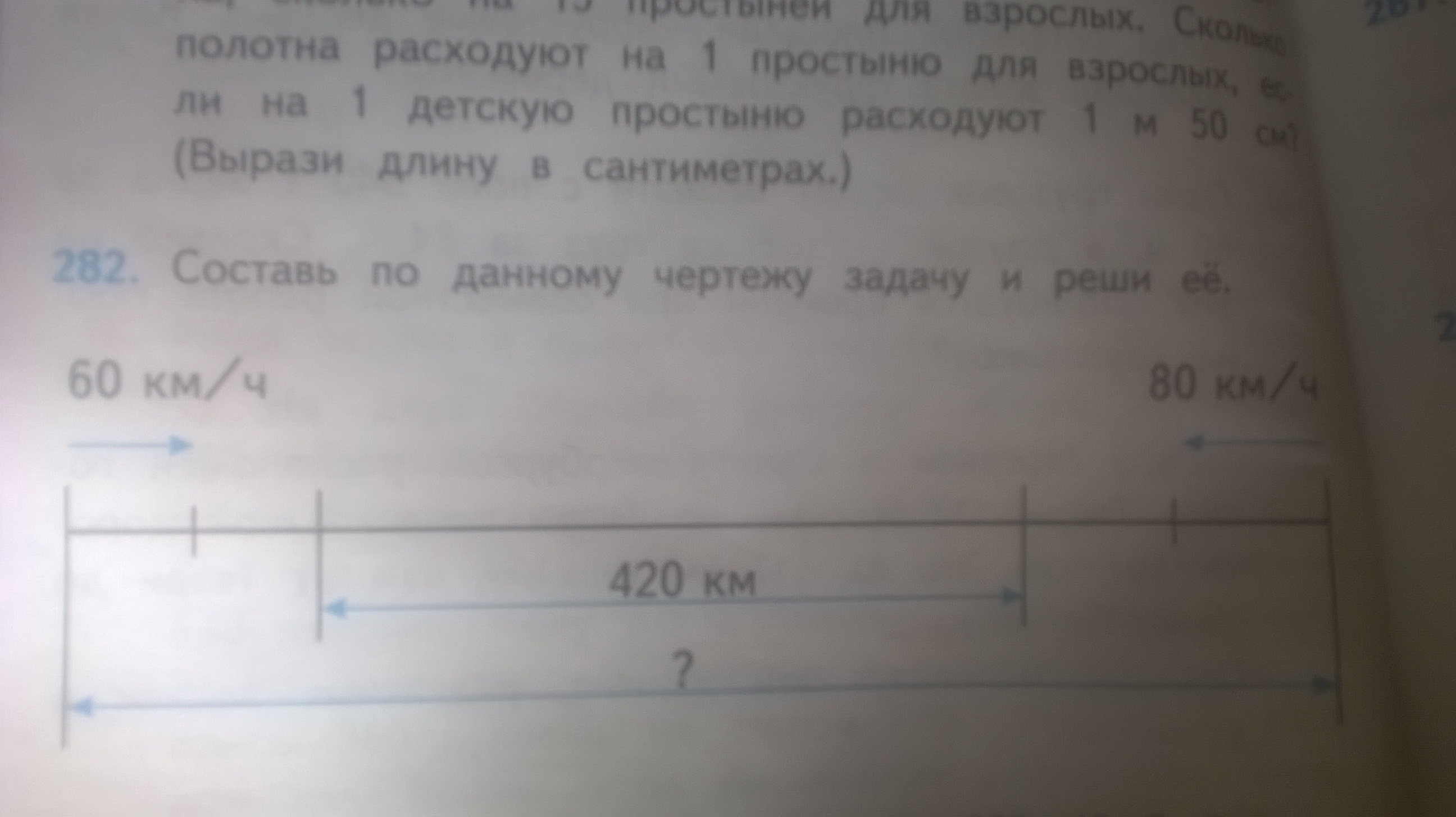 составь по данному чертежу задачу и реши ее 60 км в час 80 км в час 420 км
