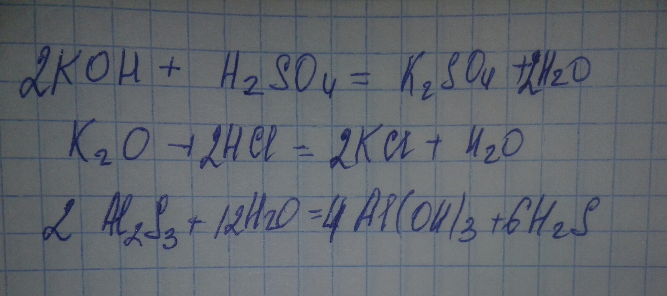 1) гидроксид калия + серная кислота = сульфат калия + вода