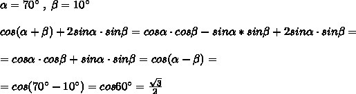 найдите значения выражения: cos(alpha-beta), если sin a × sin b = 1/2 и alpha+beta= 3pi/2;