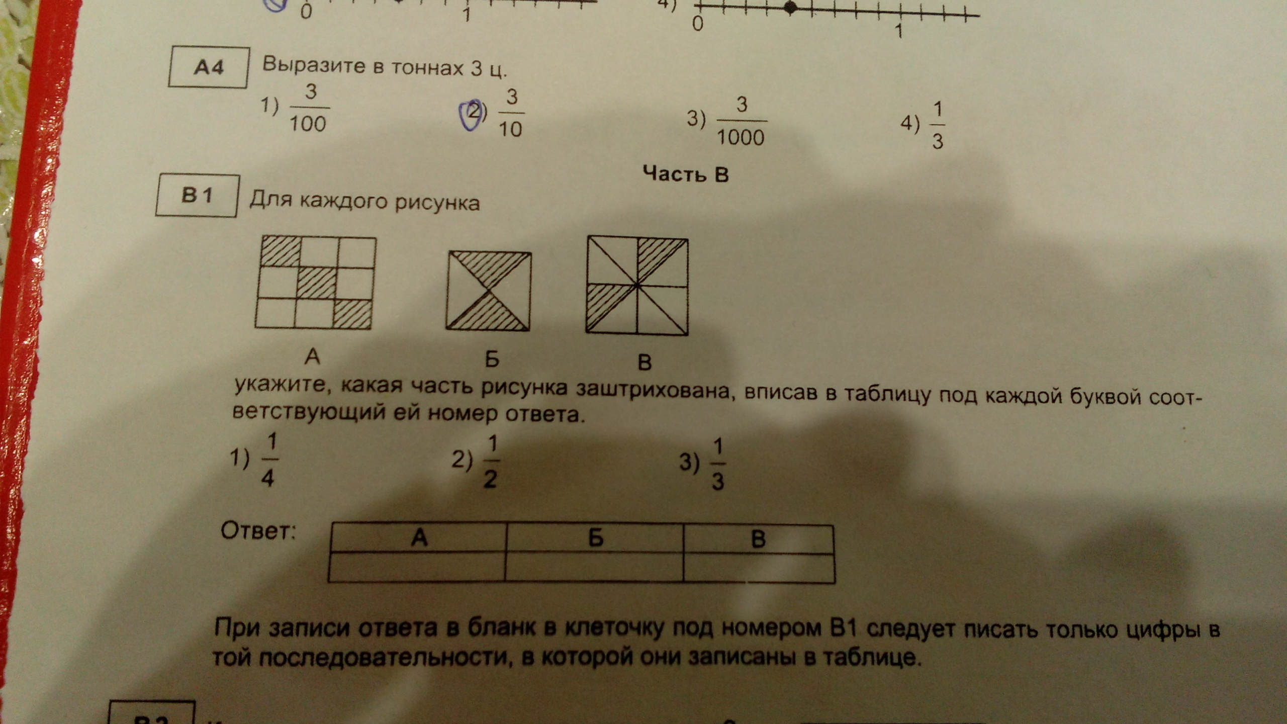 б . 2 Всего 4 ,заштриховано 2 2/4=1/2