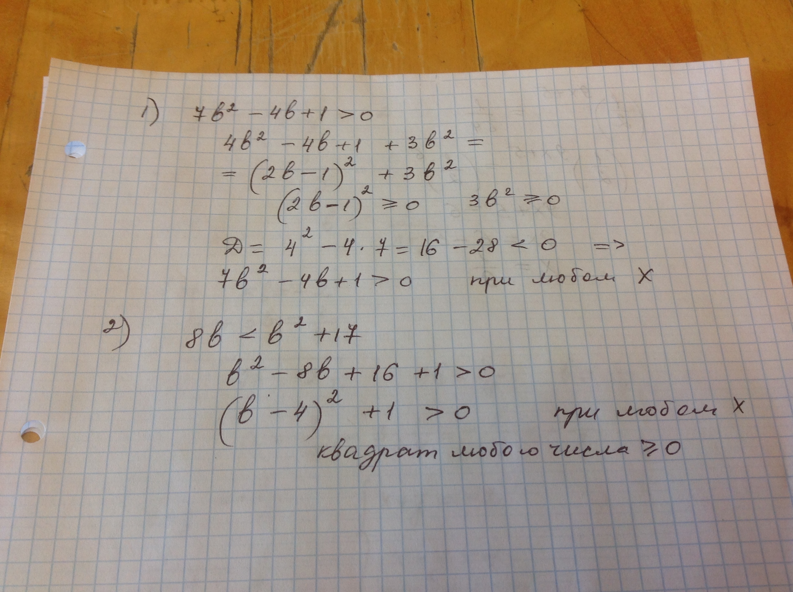 1) 7b^2-4b+1>0