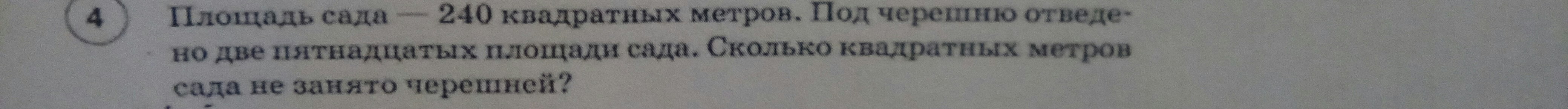 240×2÷15=480÷15=32 (кв/м) сада занято черешней