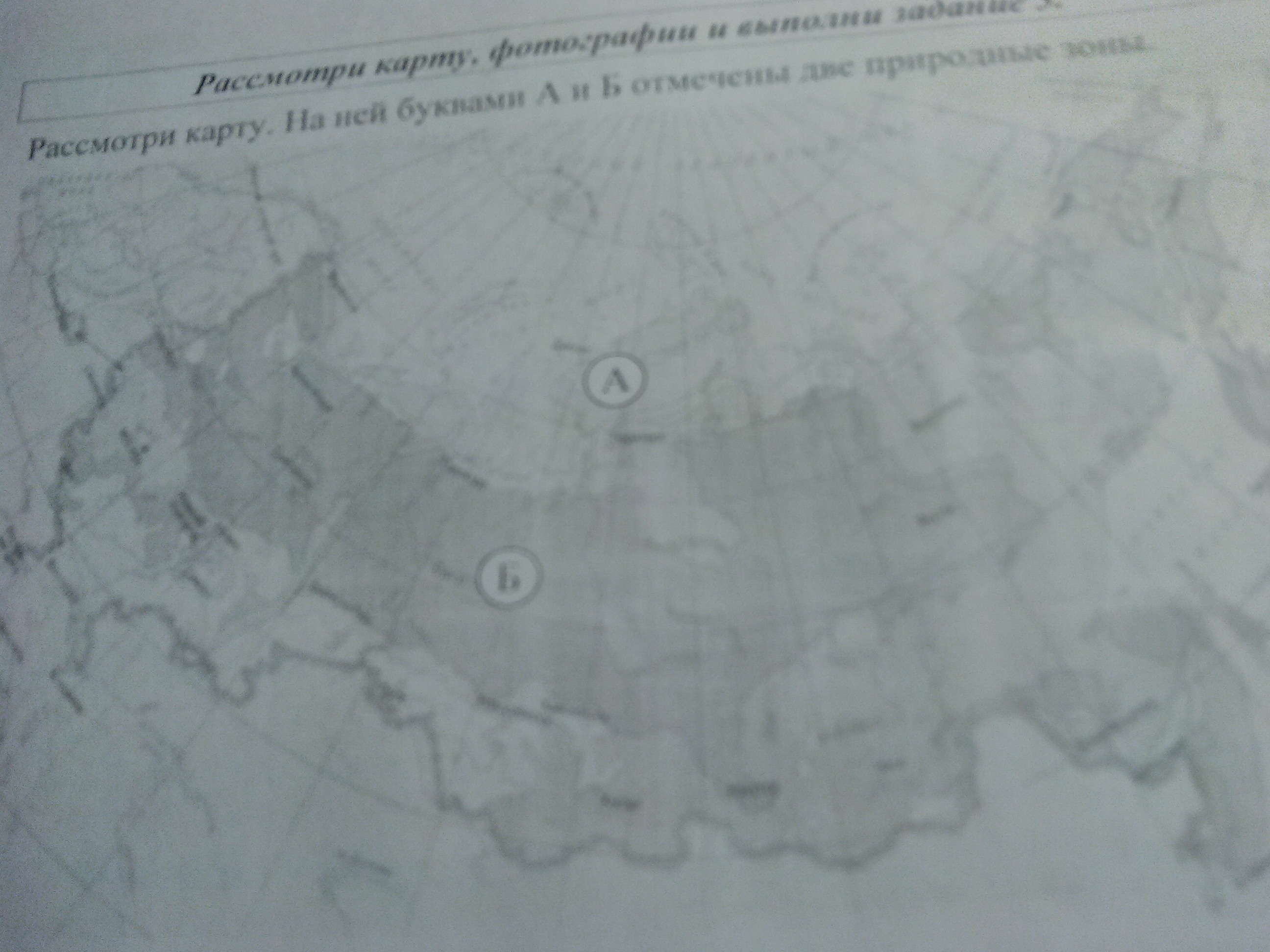 РАССМОТРИ КАРТУ. НА НЕЙ БУКВАМИ А И Б ОТМЕЧЕНЫ ДВЕ ПРИРОДНЫХ ЗОНЫ ПОЖАЛУЙСТА!!!!!