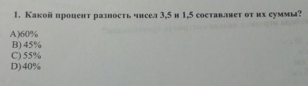 1. Какой процент разности чисел 3.5 и 1.5 составляет их сумма?