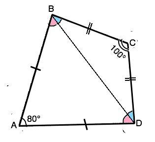 Помогите!!! В выпуклом четырехугольнике ABCD известно, что AB=AD,CD=CB,угол A=80град.,угол С=100град.Найдите угол В.Ответ дайте в градусах.