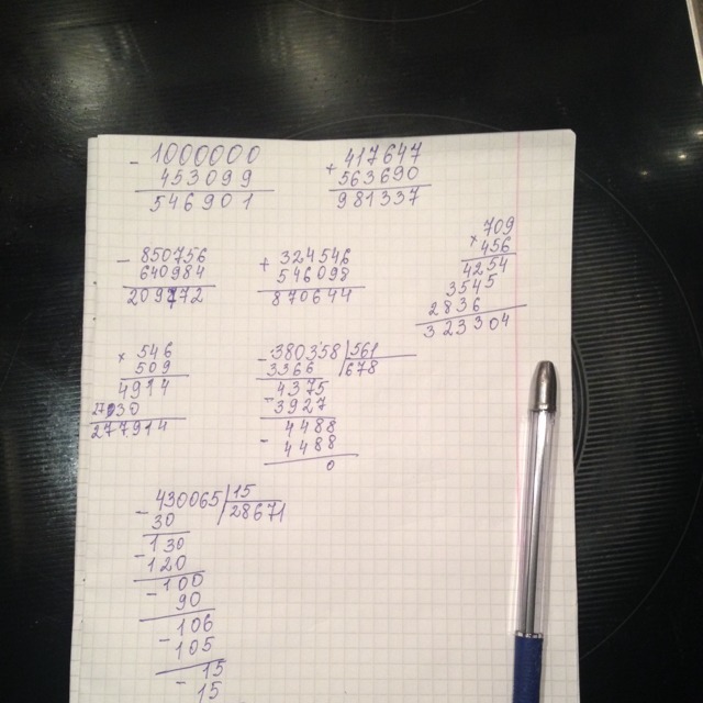 СТОЛБИКОМ: 1 000 000 - 453 099 , 417 647 + 563 690 , 850 756 - 640 984 , 324 546 + 546 098 , 709 * 456 , 546 * 509 , 380 358 : 561 , 430 065 : 15