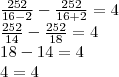 Моторная лодка прошла против течения реки 252 км и вернулась в пункт отправления затратив на обратный путь на 4 часа меньше. Найдтте скорость течения если скорость лодки в неподвижной воде равна 16 км в ч ответ дайте в км/ч.