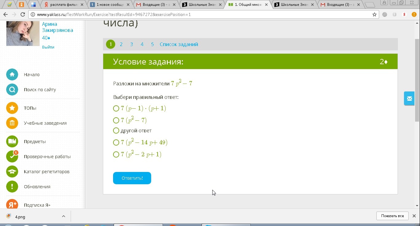 7р²-7 Ответ: 7*(р-1)*(р+1)