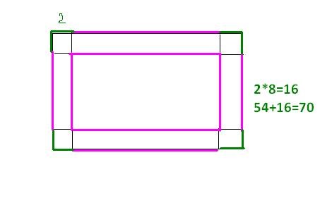 нарисуем стол... розовым... и скатерть, пока она еще не свисает, а на ней розовым выделим отрезки, равные отрезкам сторон стола. Остались отрезки в углах. Их я сделала зелеными. Дальше решение, кажется, ясно? Все во вложении.