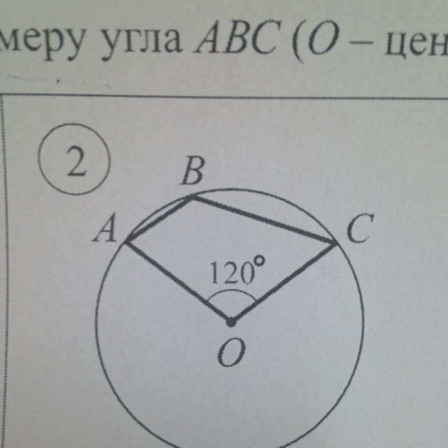 Дуга, на которую опирается ∠АВС, равна 360°-120°=240°⇒ ∠АВС=240°/2=120°