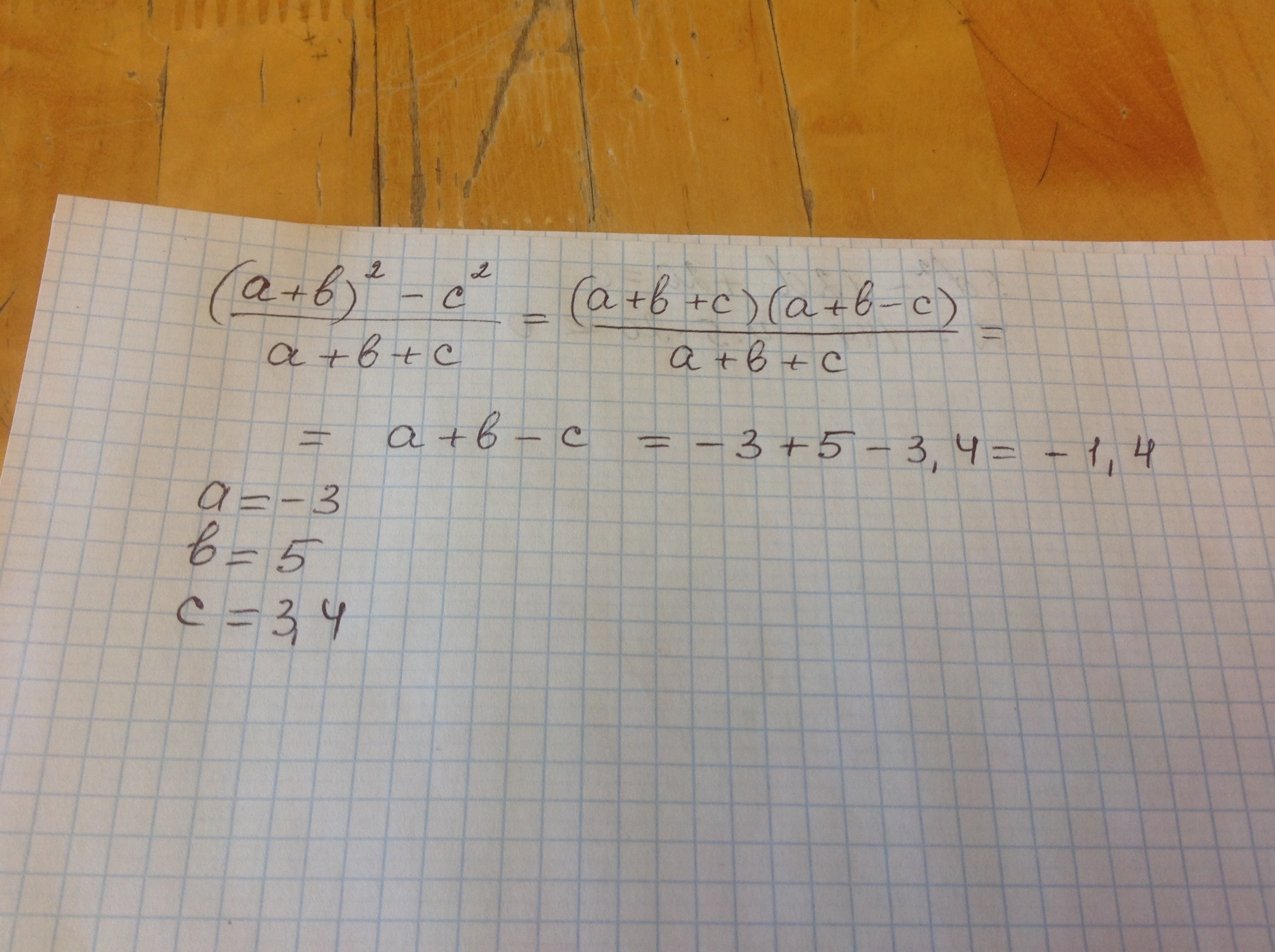 (a+b-c)(a+b+c)/(a+b+c)=a+b-c. подставляем значения: -3+5-3,4=-1,4. как-то так.