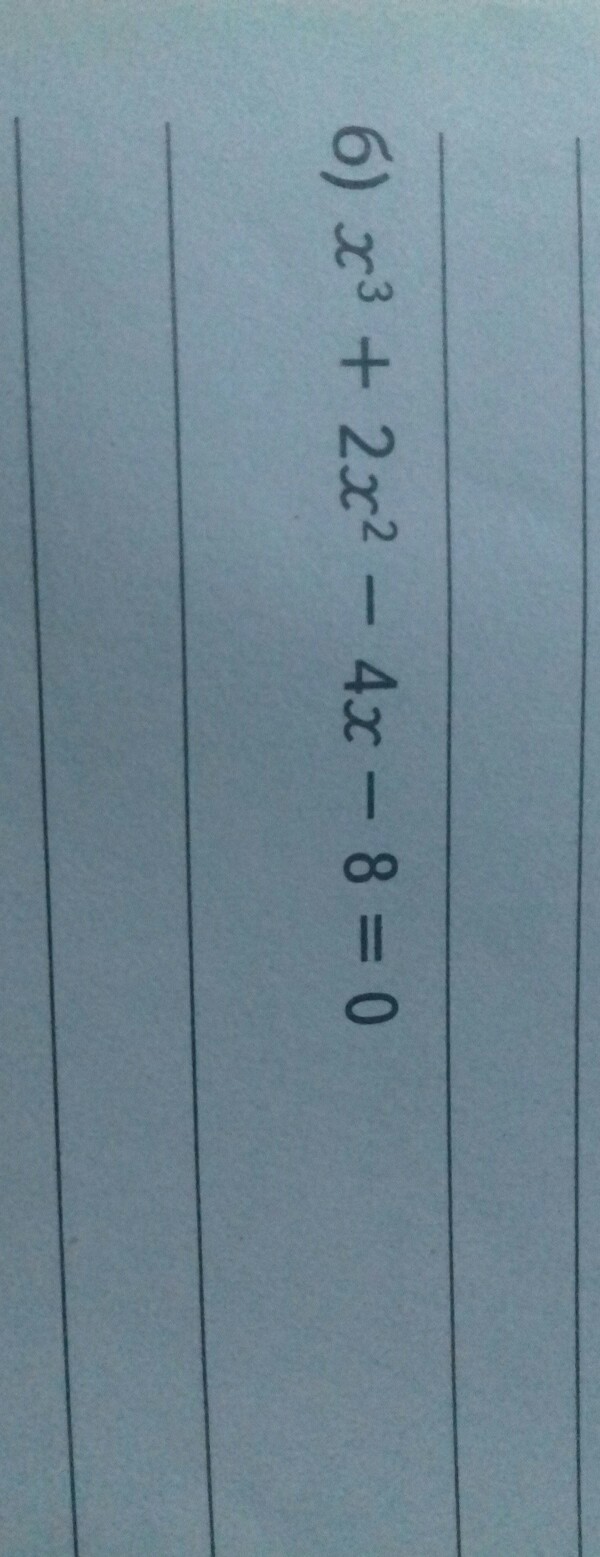 (x^3+2x^2)-(4x+8)=0, x^2(x+2)-4(x+2)=0. (x+2)(x^2-4)=0, x+2=0, или (x^2-4)=0. x1=-2. (x-2)(x+2)=0, x-2=0, x=2. Ответ: x1=-2, x2=2.
