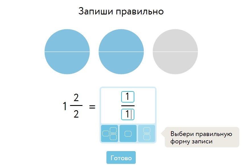 1 2/2 = 2 = 2/1. В числитель дроби запиши - 2, а в знаменатель - 1.