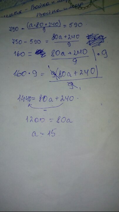 750-(а*80+240):9=590;