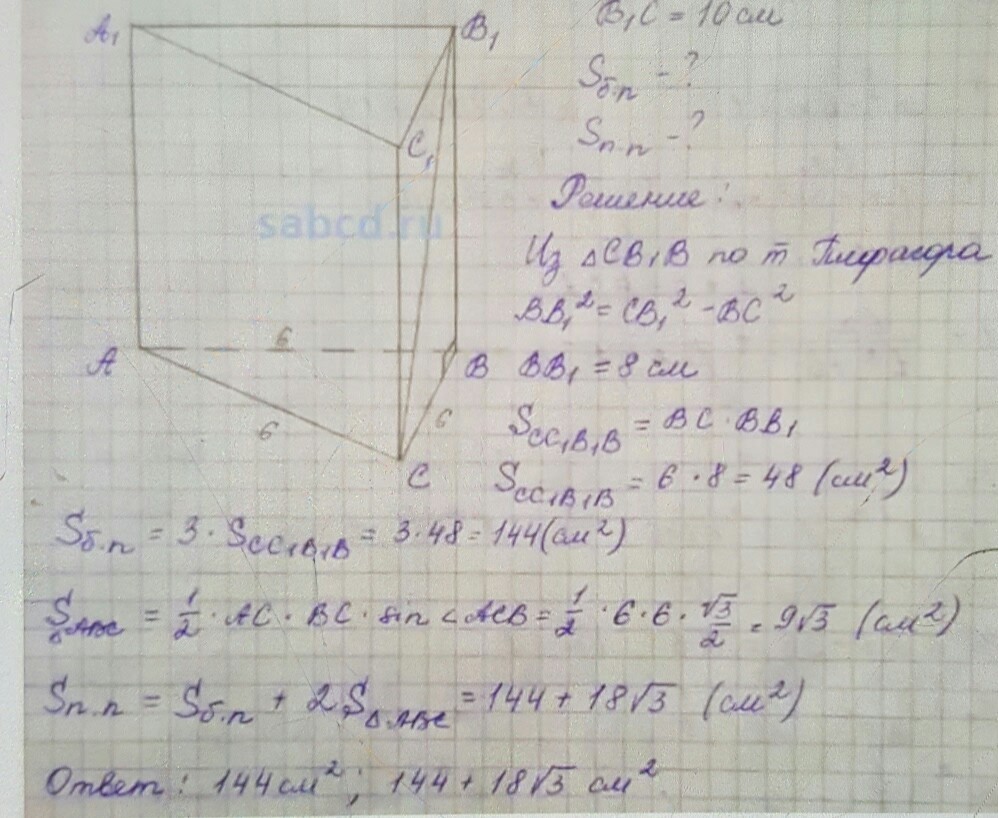 Найдите длину диагонали правильной четырехугольной призмы,стороны основания которого равны 6 см,а диагональ боковой грани 10 см .