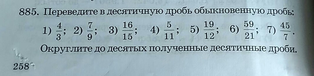 Чтобы перевести в десятичную дробь обычную, нужно числитель разделить на знаменатель и полученный результат округлить до десятых т.е. один знак после запятой
