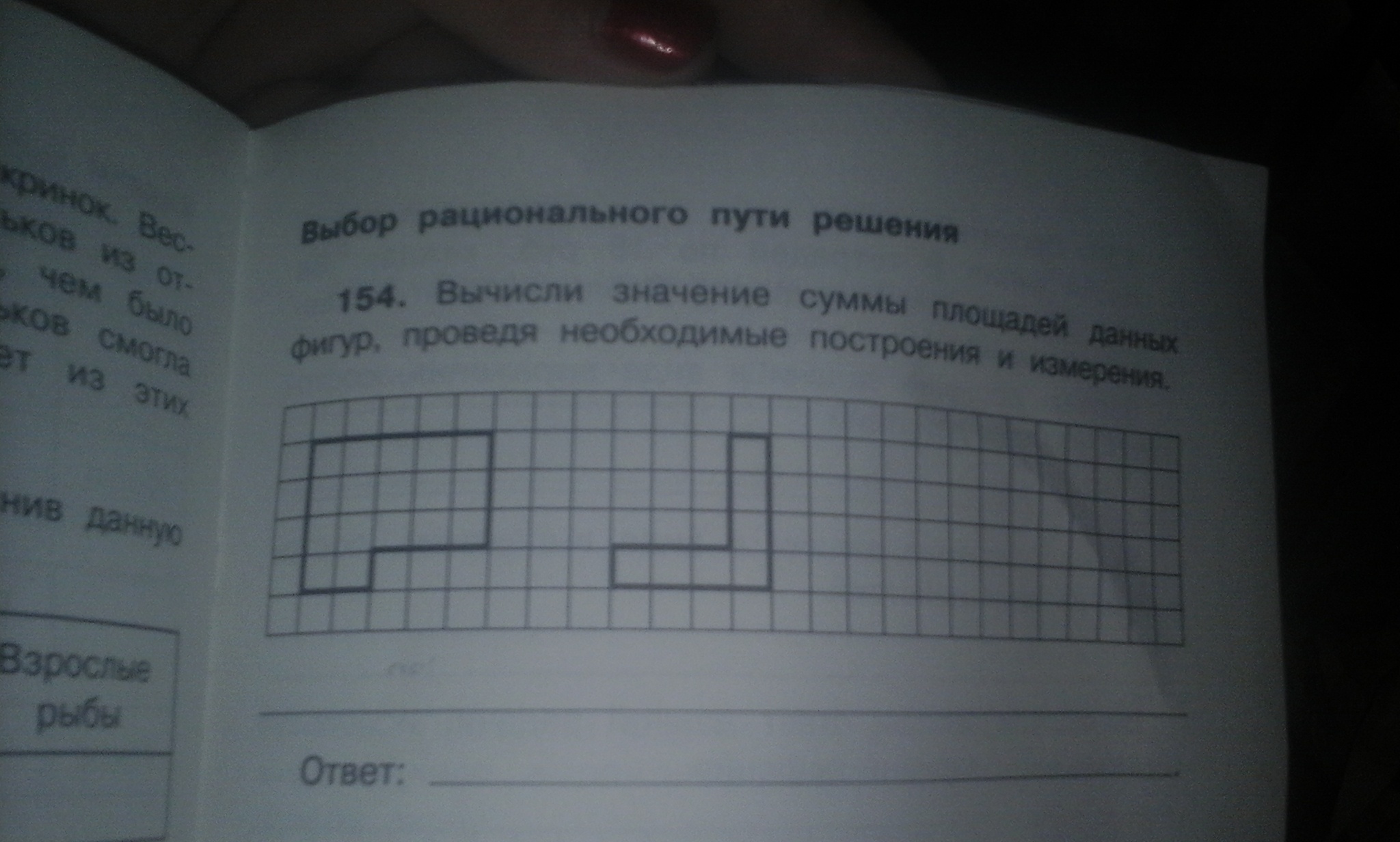 Вычисли значение суммы площадей данных фигур,проведя необходимые построкния и измерения.