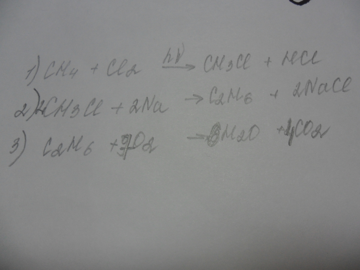 напишите уравнения реакций при помощи которых можно осуществить следующие превращения СН4=>CH3CI=>C2H6=>CO2 Укажите условия их протекания