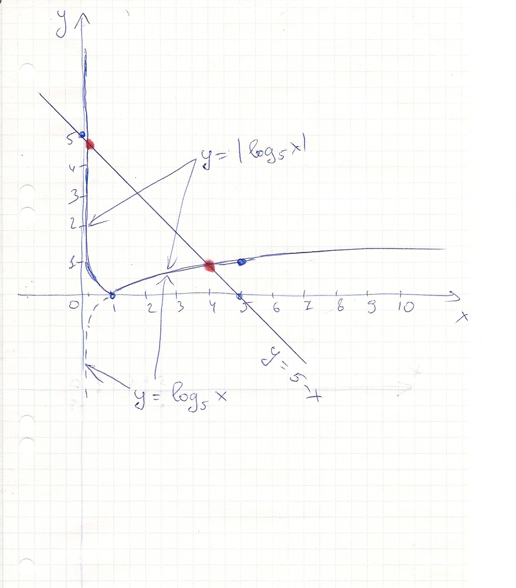 Графически можно показать, что будет два решения, т.к. два пересечения графиков функций (отметил красным)