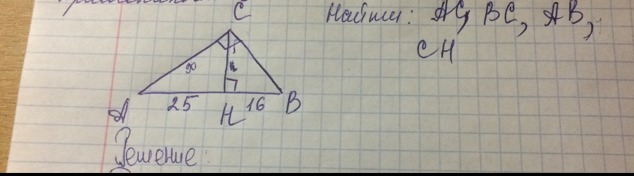 СН = √(25*16) = 5*4 = 20 (свойство высоты из прямого угла).