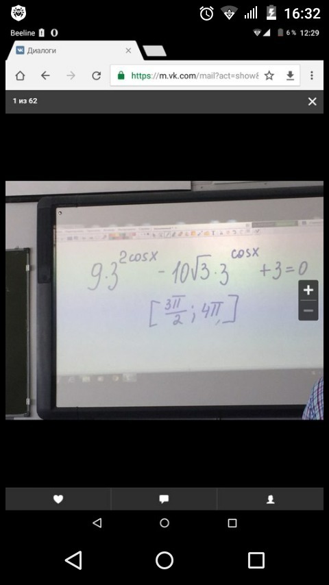 1. z = 1/3 --> 3^(cos(x) + 1/2) = 3^(-1) --> cos(x) + 1/2 = -1 - нет решений, т.к. |cos(x)| <= 1