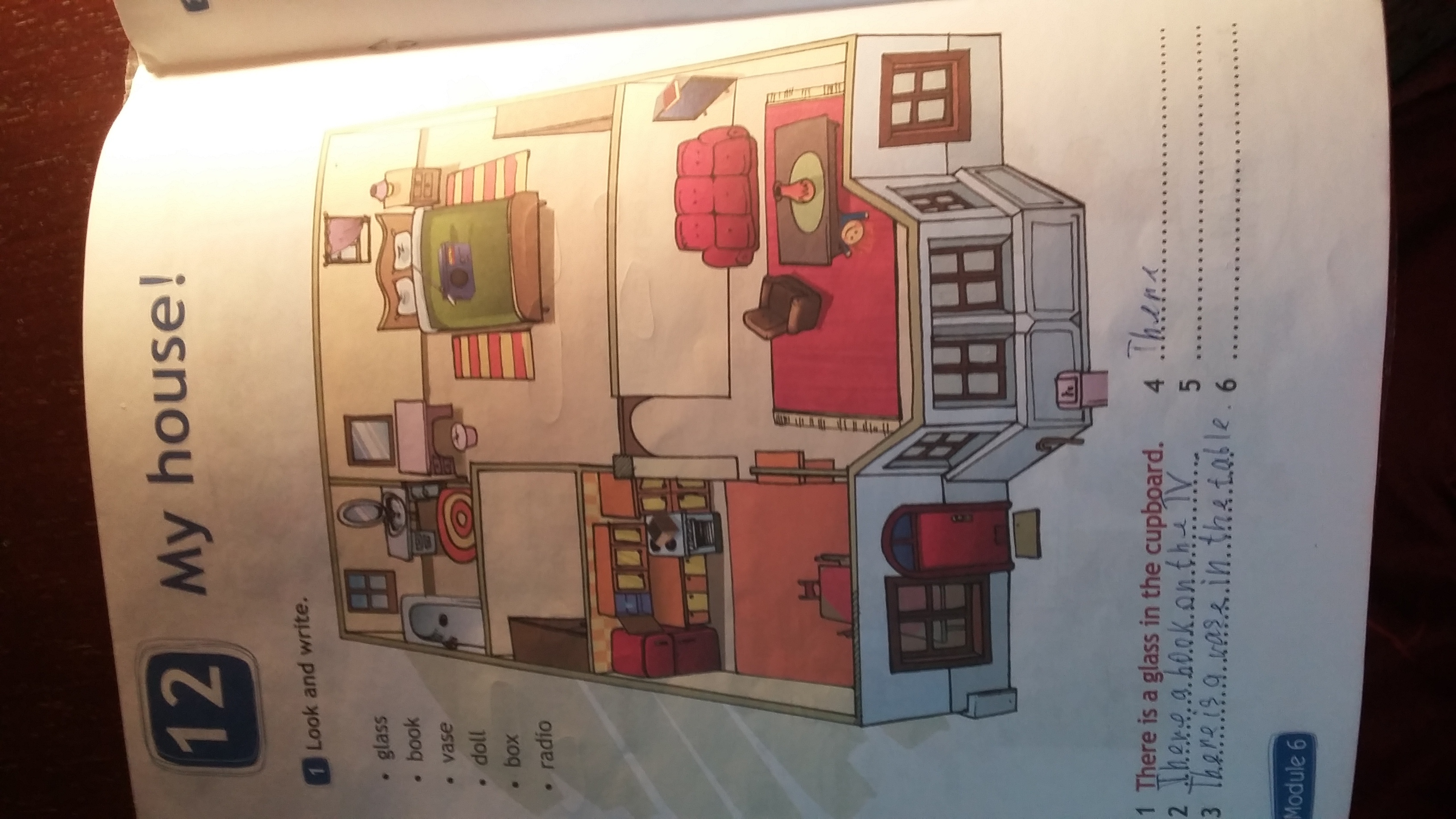 There is a doll under the table.
