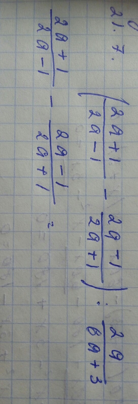 (2a+1/2a-1-2a-1/2a+1)=(2a+1)×(2a+1)-(2a-1)×(2a-1)/4a^2-1=2×4a/4a^2-1=8a/4a^2-1