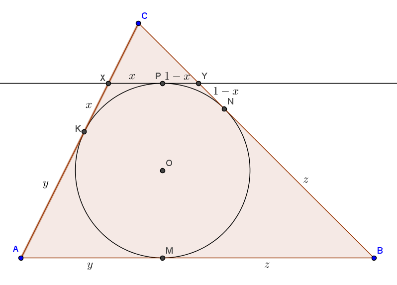 Обозначения смотрите на рисунке, использовано то, что отрезки касательной, проведенных из одной точки, равны.