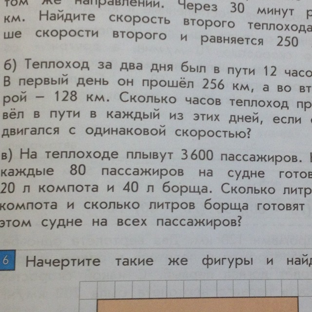 Теплоход за два дня был в пути 12 часов. В первый день он прошёл 256км, а во второй 128км. Сколько часов теплоход провёл в пути в каждый из этих дней,если он двигался с одинаковой скоростью?