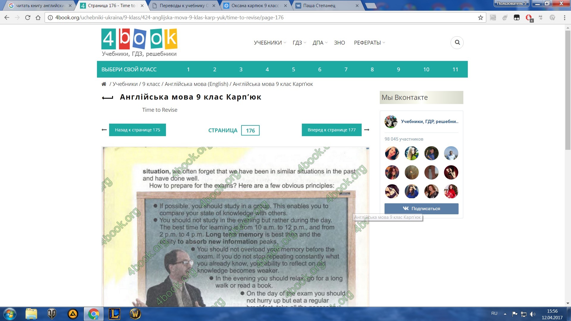 Нужно перевести текст с английского на рус/укр. текст из книги карпюк 9 клас. Exams стр. 175-176