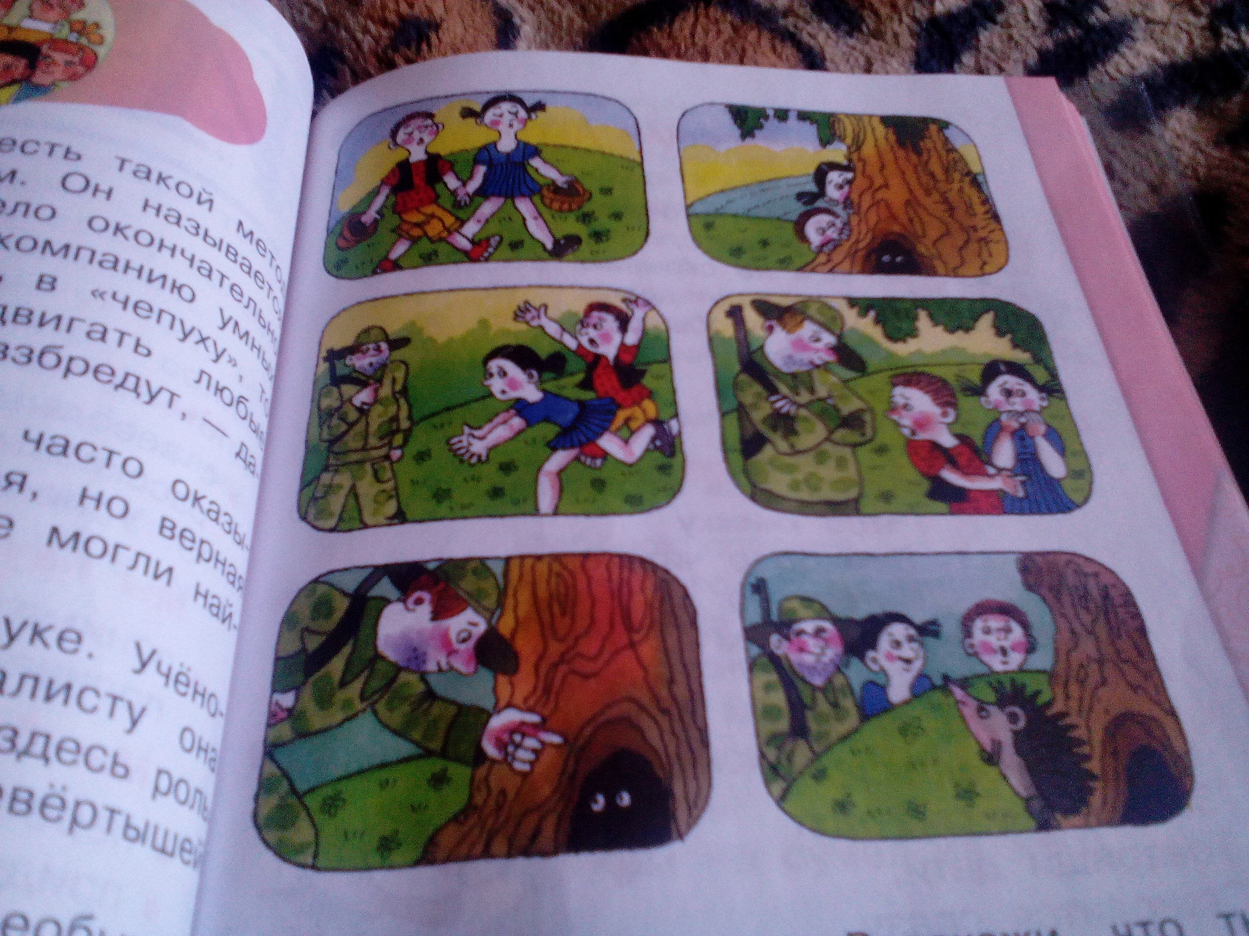 Брат и сестра пошли за грибами. Вдруг они увидели в дупле страшного зверя. Они очень испугались и начали кричать. С криками они бежали домой и вдруг набрели на охотника. Они рассказали ему всё и охотник вместе с ними пошёл туда. Он достал неизвестного зверя и показал детям. Этот страшный зверь оказался ёжиком. Дети весь день вспоминали эту смешную историю.
