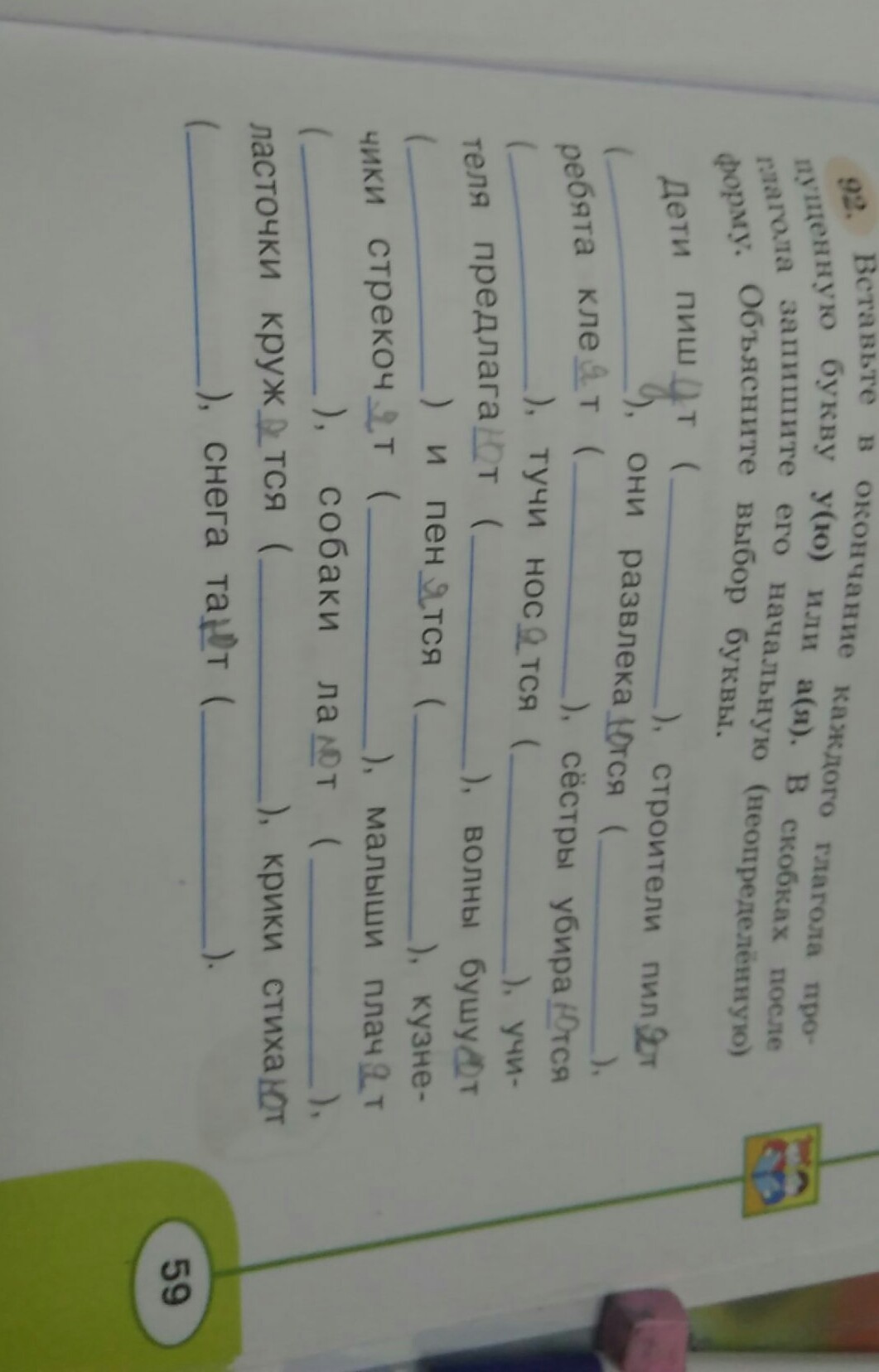 надо задавать вопросы. Например: Дети пишут. что делать писать. если а перед ть в вопросе то пишется у