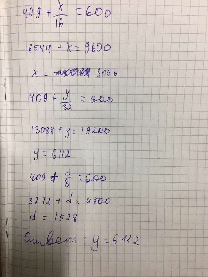 а)409+Х:16=600,409+у:32=600,409+d:8=600.