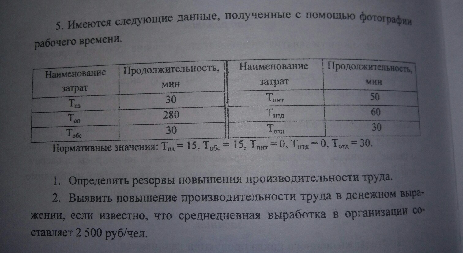 где Тпз + Топ + Тобс + Тпнт + Титд + Тотд - рабочее время подготовительно-заключительной работы, оперативной работы, работы по обслуживанию рабочего места, личных надобностей, потерь и отдыха.