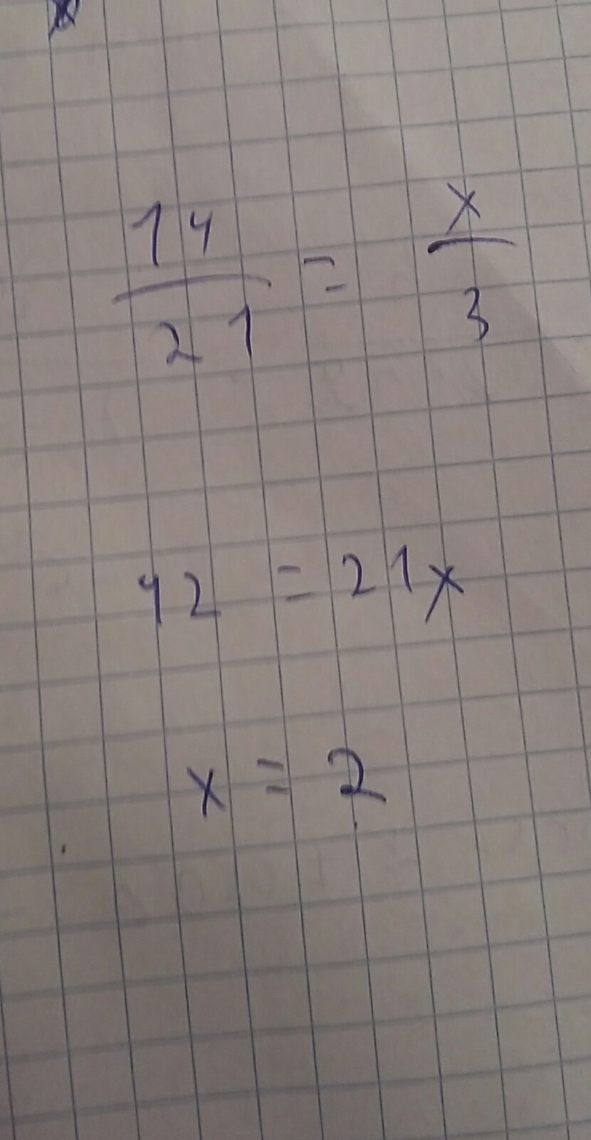 3. При каком значении Х верно равенство: 14/21 = x/3