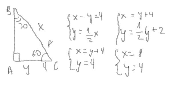 (P.S. Если что, то против угла в 30 град. лежит половина гипотенузы)