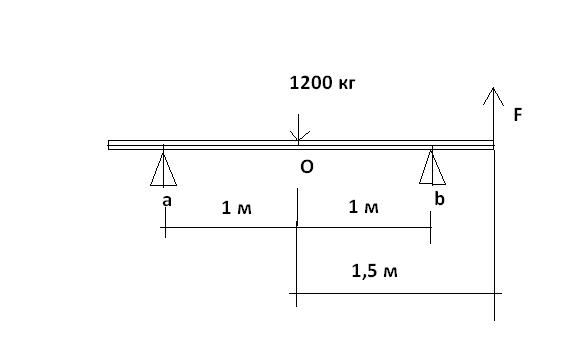 Балка массой 1200кг и длиной 3м лежит на опорах, равноудаленных от ее концов. Расстояние между опорами 2м. Какую силу перпендикулярную балке и направленную вверх, нужно приложить, чтобы приподнять балку за один из краев? Ответ:4,8 кН