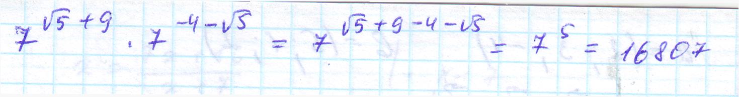 7 в степени корень из 5 +9 - 4 -корень из 5 = 7 в 5степени = 16807