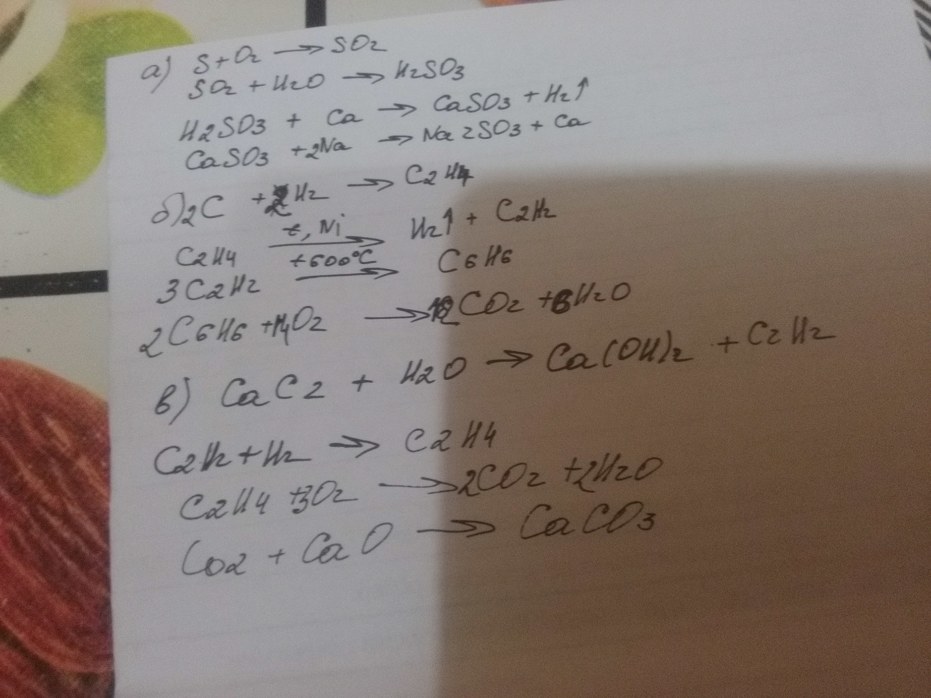 а) S→So₂→H₂So₃→CaSo₃→Na₂SO₃