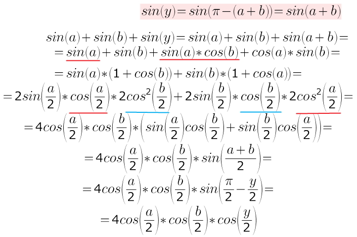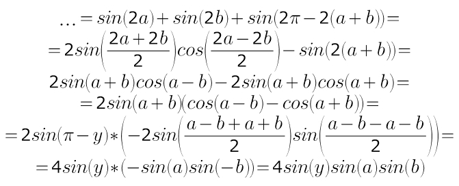 а как мы узнали что sin(y)=sin(п-(a+b))