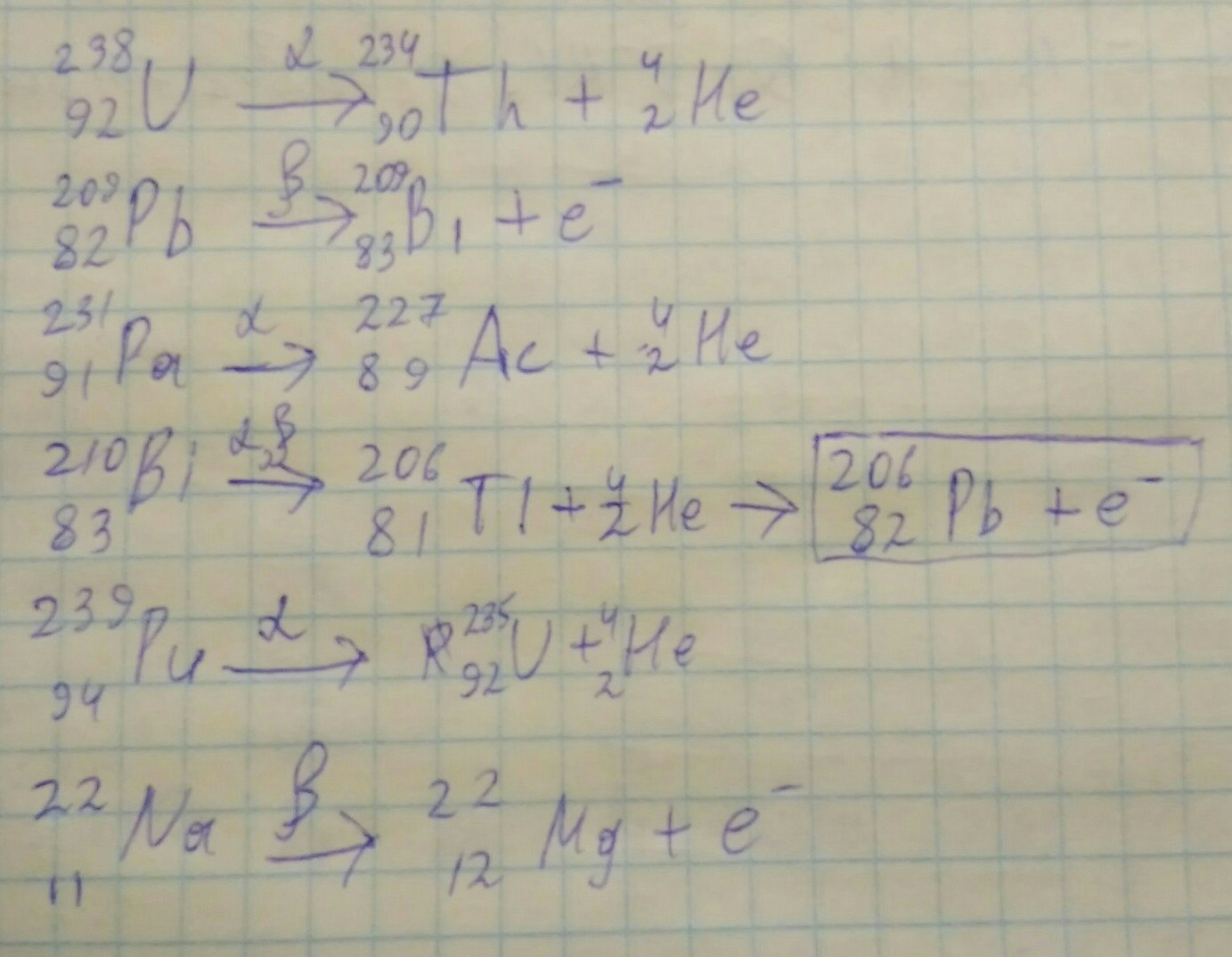 При альфа-распаде массовое число начального элемента уменьшается на 4 единицы, а число заряда уменьшается на 2 единицы.При бета-распаде зарядовое число увеличивается на 1 единицу, а массовое число не изменяется.