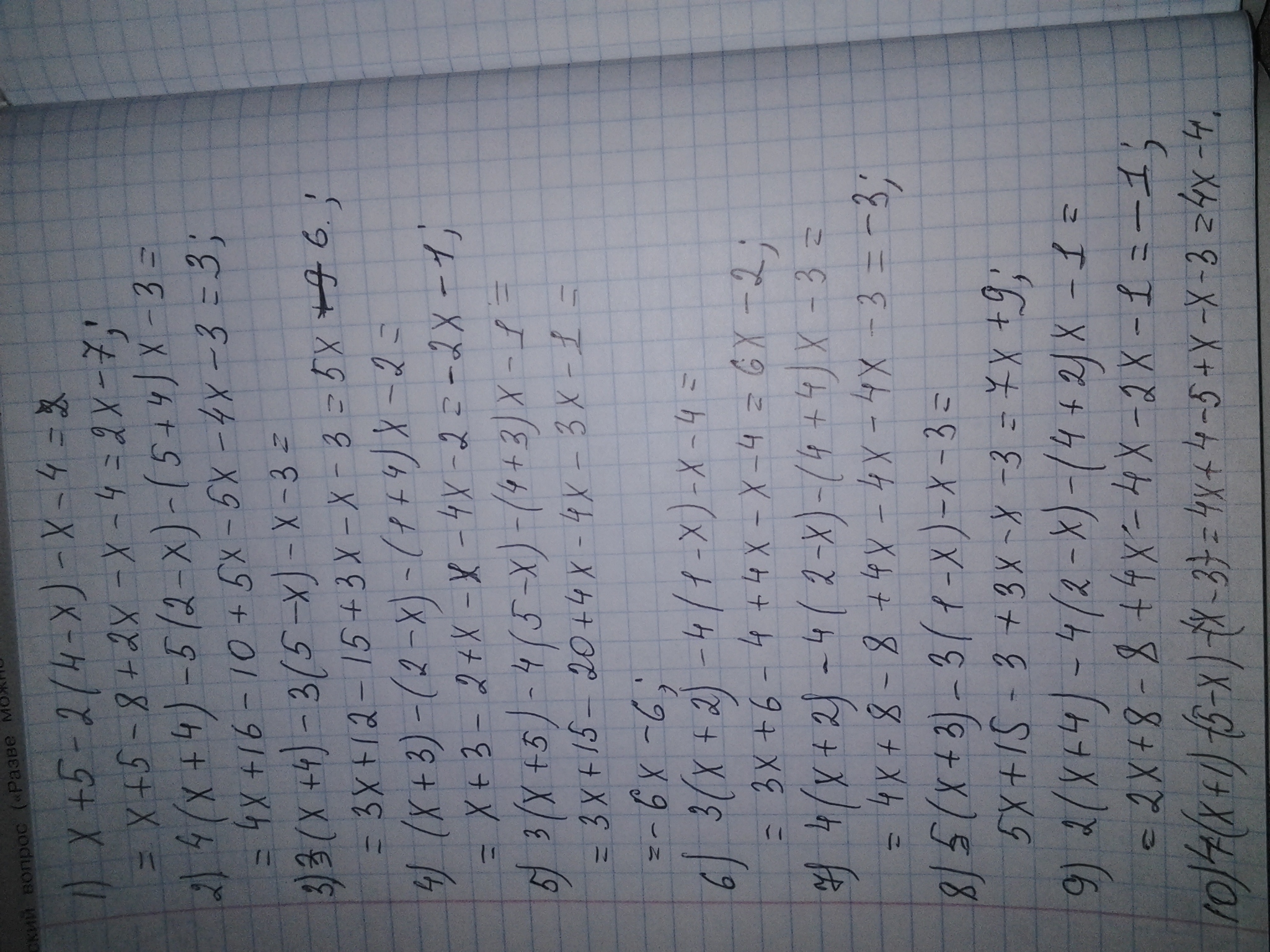 4.(х+3)-(2-х)-(1+4)х-2=х+3-2+х-5х-2=-3х-1