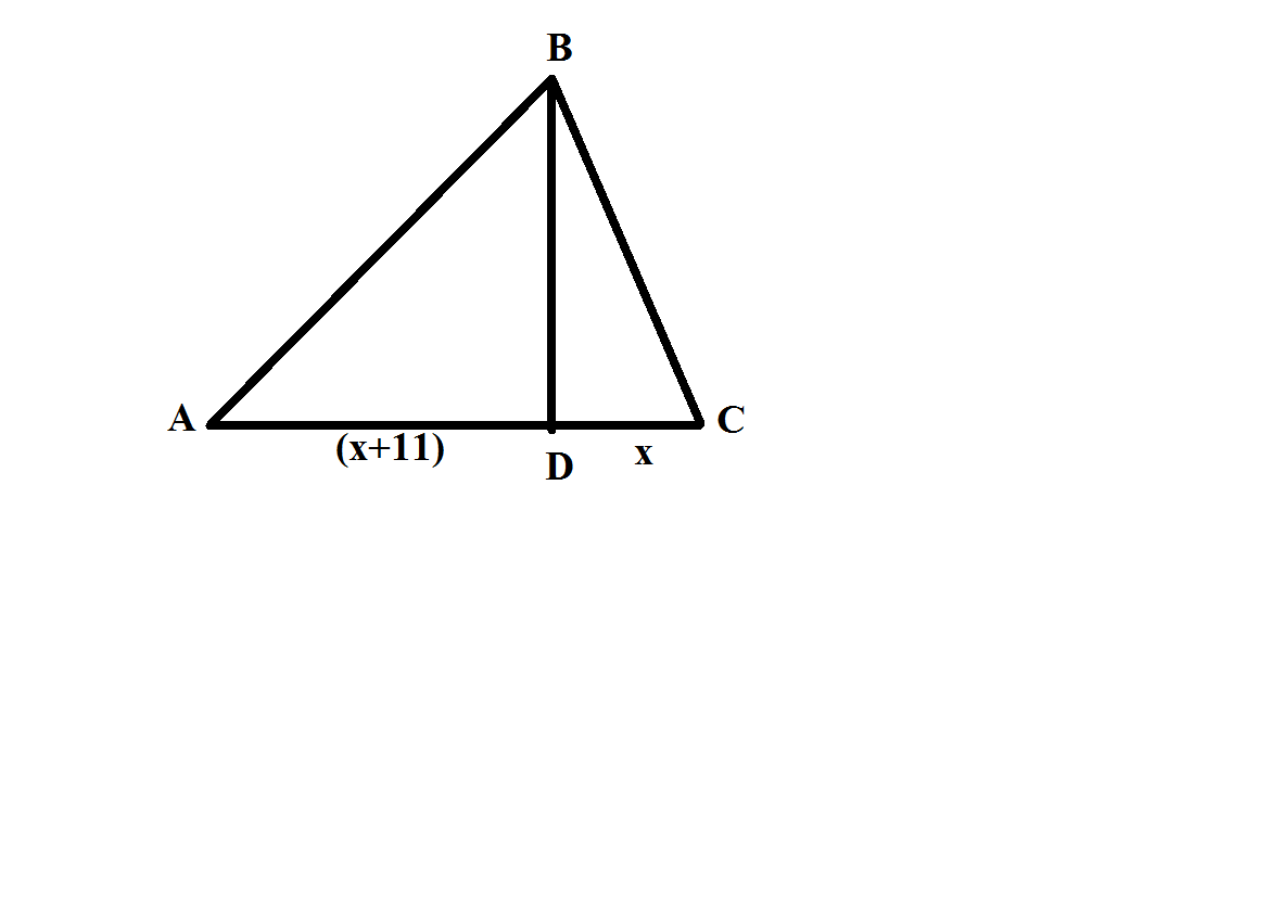 Из точки B к прямой a проведены две наклонные: BA= 2- см и BC= 13 см. Проекция наклонной BA больше проекции наклонной Dc на 11см. Найдите проекции этих наклонных?