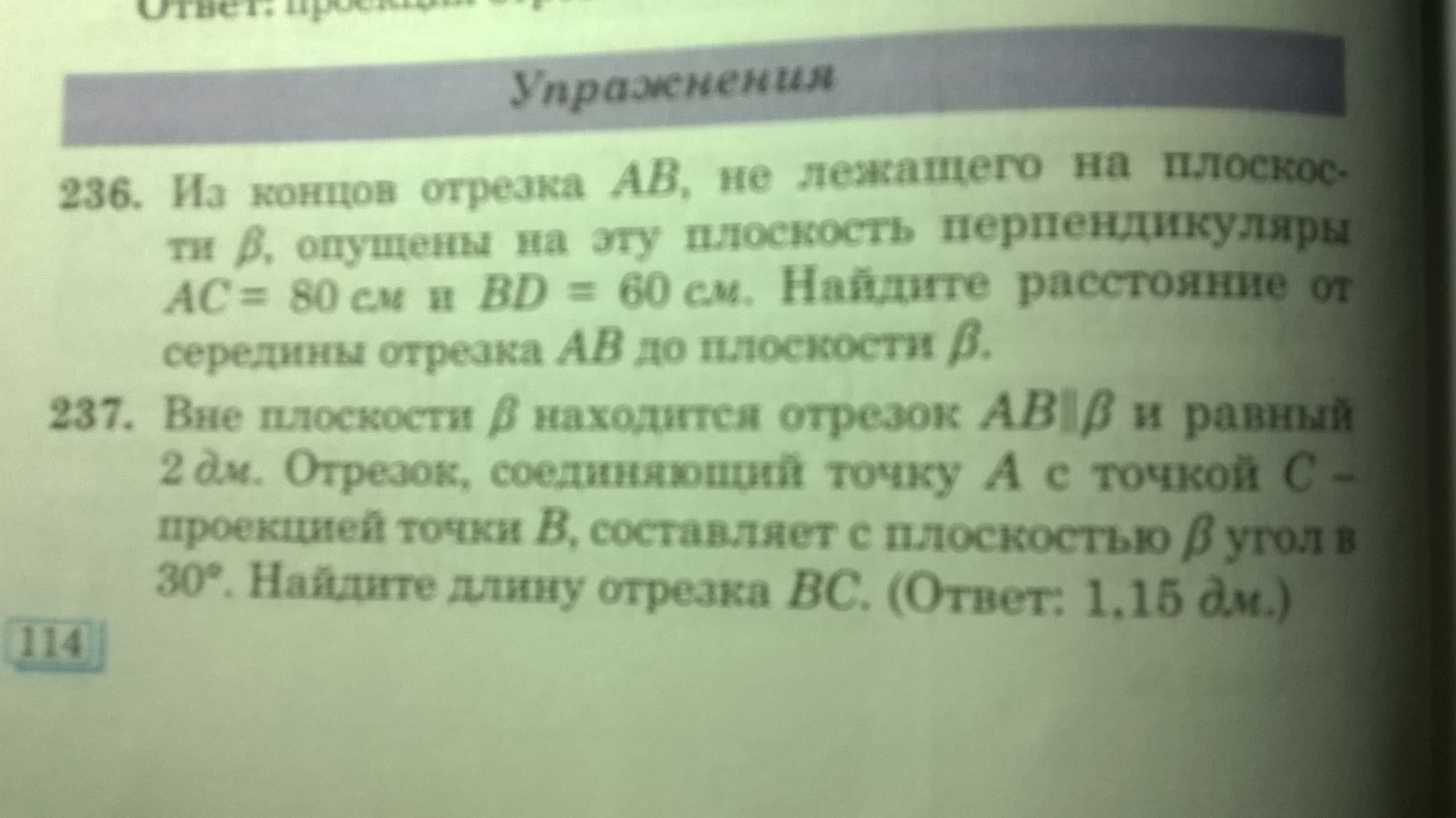 Рисуем горизонтальную плоскость β. Вне плоскости изображаем отрезок АВ ║ β. Из точки В опускаем перпендикуляр на плоскость β, он пересекает плоскость в точке С. Из точки С в плоскости β проводим прямую СК ║ АВ.