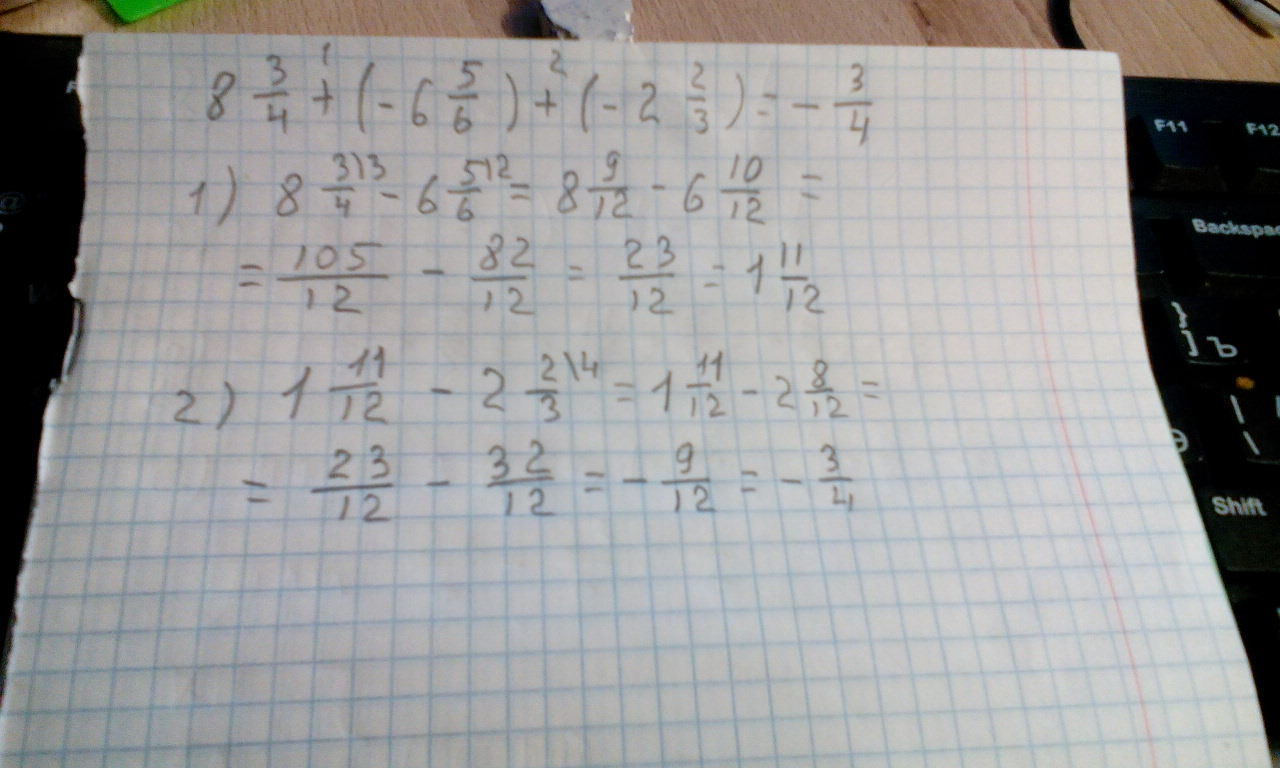 К сумме чисел 8 целлых 3/4 и - 6 целых 5/6 прибавить число противоположному числу 2 целых 2/3 погоните пожалуйста