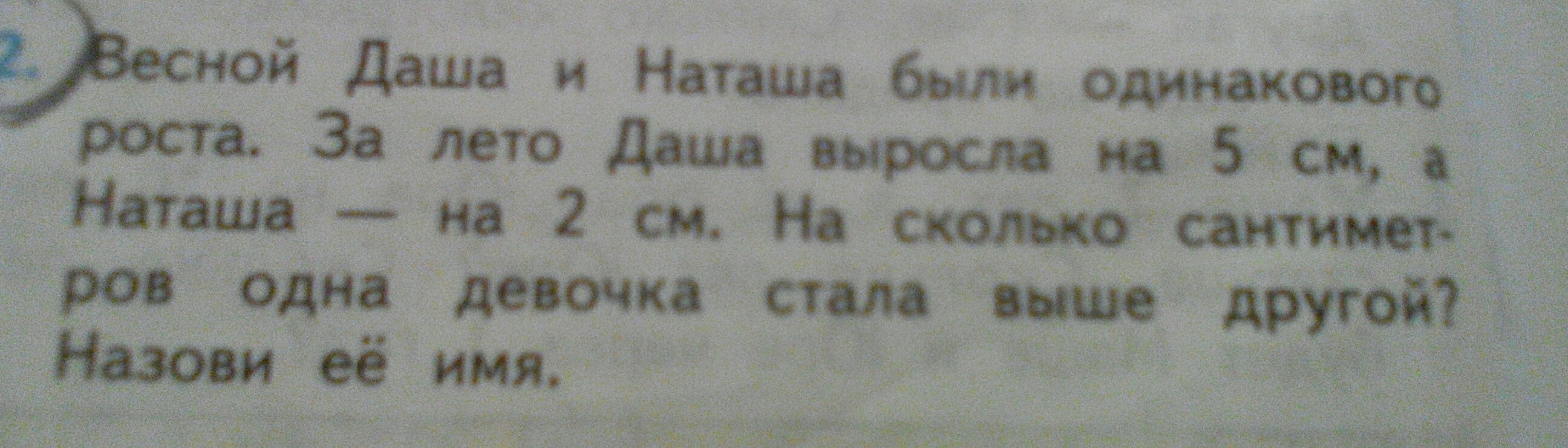 Т.к. по условию Даша подросла больше Наташи (Даша на 5 см, Наташа на 2 см, 5>2), то ответ: