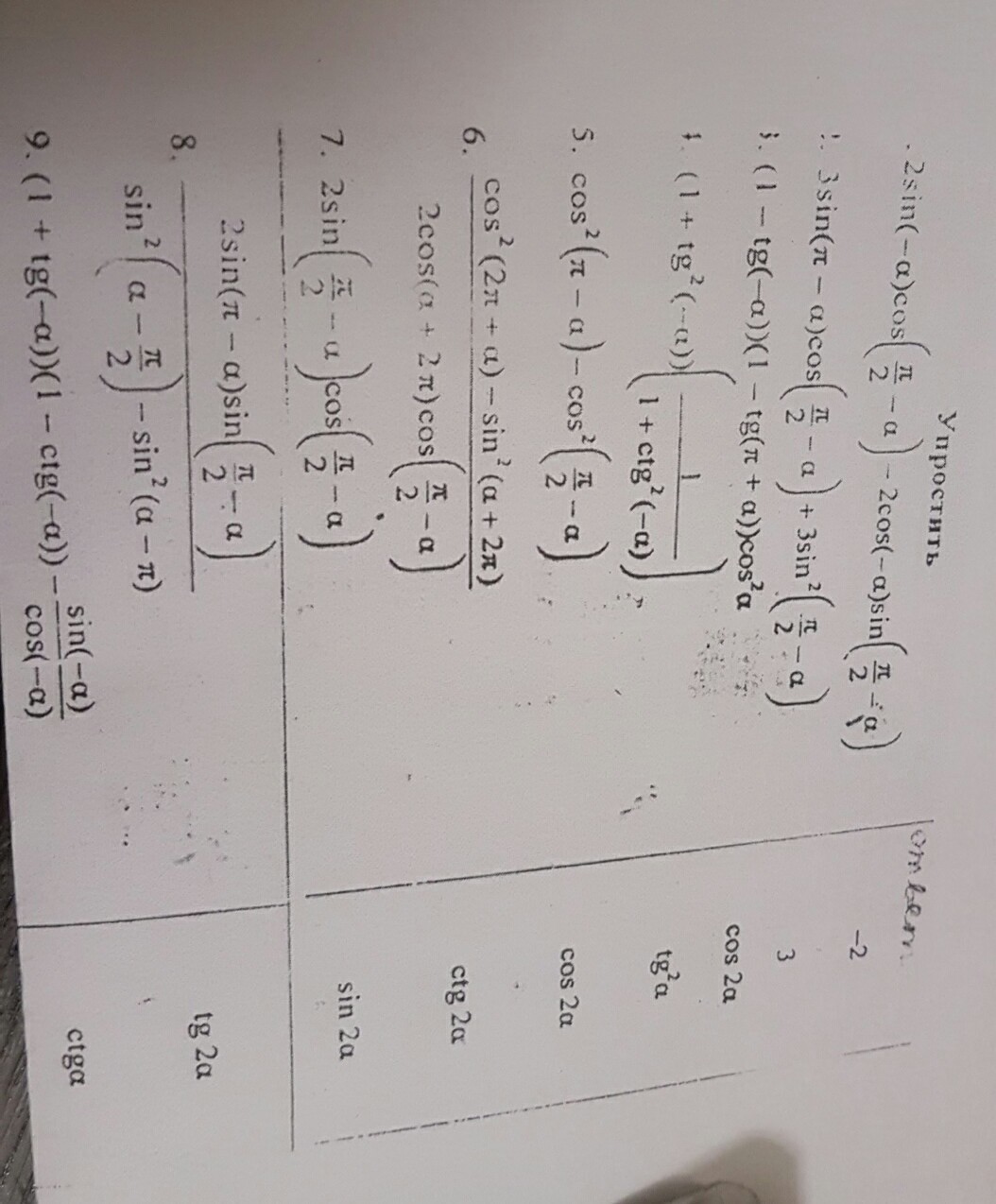 4) (1+td^2(-a))*(1/(1+ctg^2(-a))=(1+tg^2a*(1/(1+ctg^2a)=