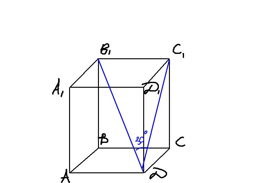 Выходит треугольник В1С1Д прямоугольный значит , гипотенуза ббудет равна диагональи, значит катет лежащий против угла 30 равен половине гипотенузе она же диагональ то есть d/2,