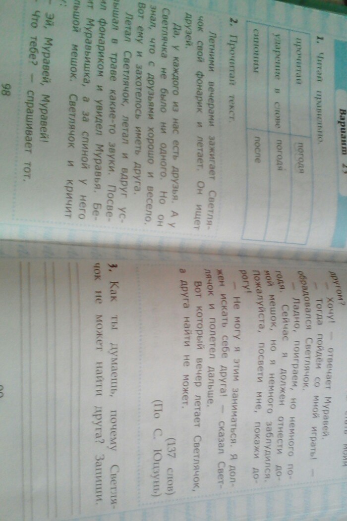 Светлячок не может найти друга так как, он не оказал помощь муравью. А ведь настоящие друзья это те ,кто помогает в трудную минуту. Пусть даже они и не были друзьями, но если бы он оказал помощь, то они смогли бы общаться.